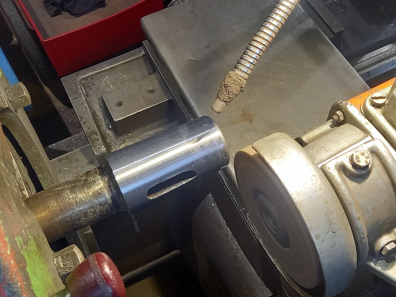 Am 5. Januar hatten wir bei unserem Besuch in Mönchengladbach zusammen mit EWK festgestellt, daß der rechte Kreuzkopf in seiner Konusbohrung eigentümliche Krusten zeigte; entweder alter Glühzunder oder vielleicht auch Rostschichten. Die konnten so nicht belassen werden, wenn wieder ein einwandfreier Sitz der Kolbenstange im Kreuzkopf erreicht werden sollte. Also wurde der Kreuzkopf bei EWK auf der Drehmaschine ausgerichtet, was schon mal einen Tag in Anspruch nahm, denn so ein Kreuzkopf ist nicht einfach aufzuspannen.