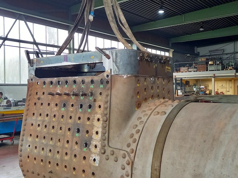 Verschiedene Nietlöcher in der späteren Schweißfuge wurden zugeschweißt und die ovalen Flicken, die die DB zwecks Feuerbuchsreparatur eingesetzt hatte, wurden von der Wasserseite ausgefugt und sauber verschweißt.