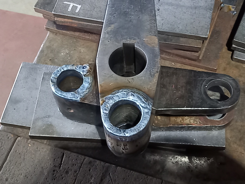 Auch die Steuerwelle selbst wurde begonnen aufzuarbeiten, d.h. die beiden Aufwerfhebel wurden abgezogen, die Lagerstellen aufgeschweißt und auf mutmaßliches Urmaß abgedreht. Die Aufwerfhebel selbst wurden an den Verschleißstellen behutsam mittels WIG aufgeschweißt.