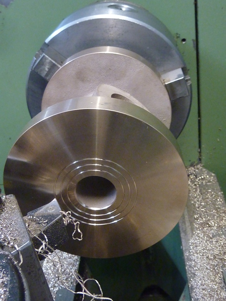 ... und hier ist er zur weiteren Bearbeitung auf die Planscheibe gespannt.